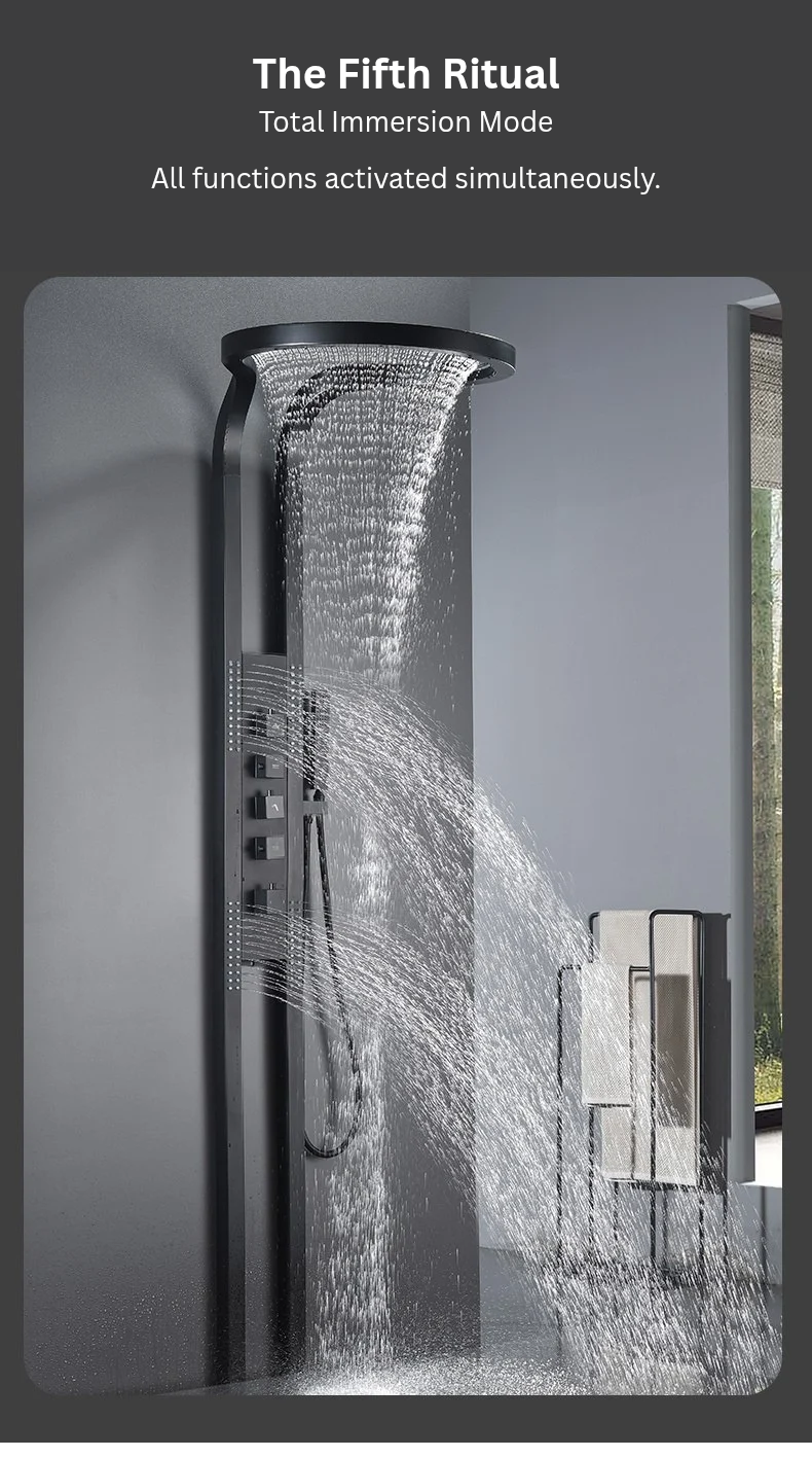 The fifth mode allows simultaneous operation — transforming your shower into a complete hydrotherapy experience.