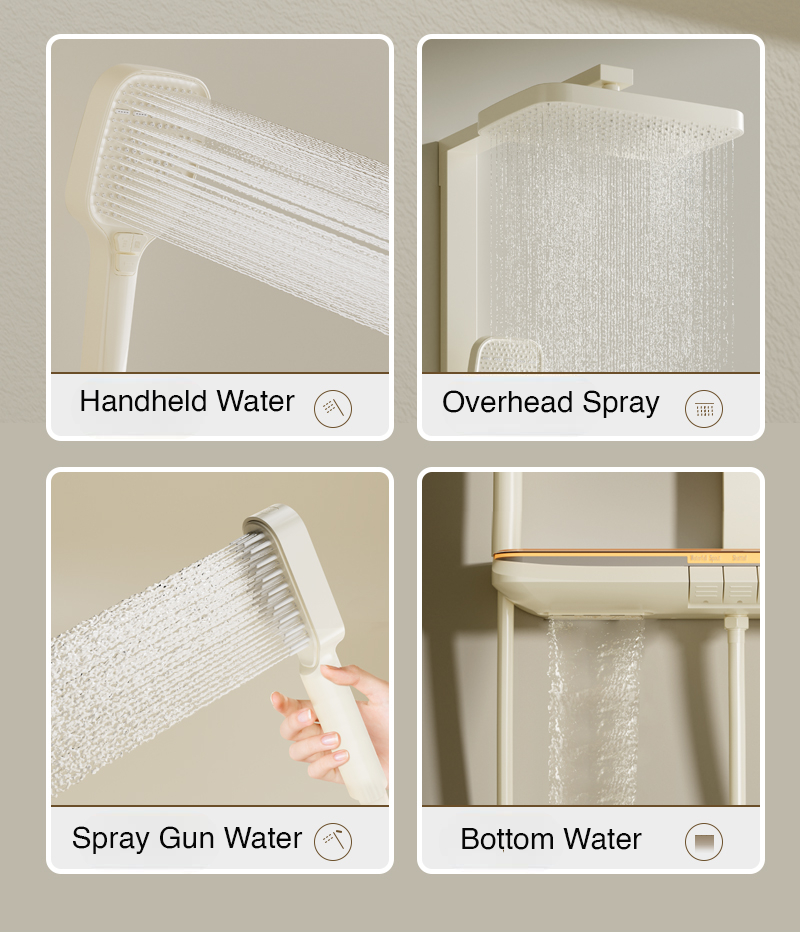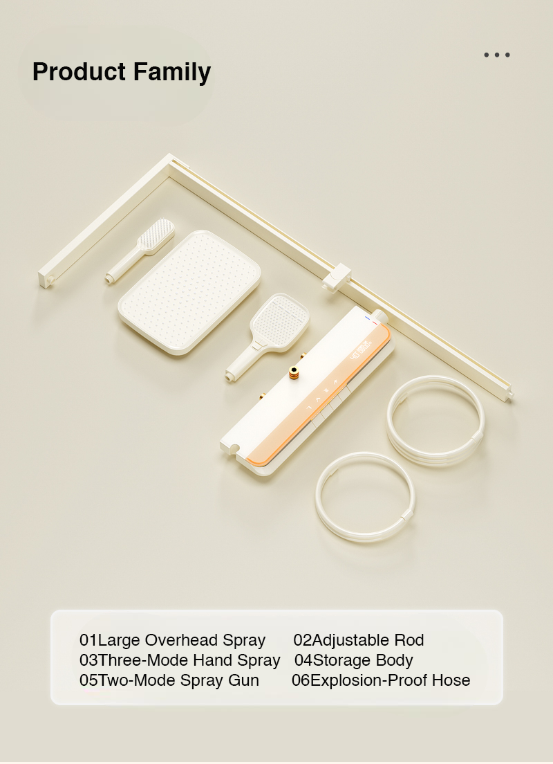 - 多种出水口:享受三种出水口的多功能性,包括大型顶置喷淋、手持花洒和内置擦洗功能。无论您喜欢柔和的雨淋式淋浴还是强劲的喷淋式淋浴,SmartStream 淋浴系统都能满足您的所有需求。
