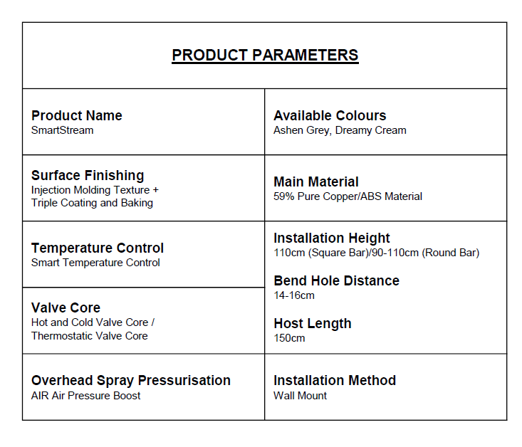 - 59% 纯铜水道: SmartStream 淋浴系统采用正品材料制成,确保强大的抗压能力和持久的性能。59% 纯铜结构提供卓越的耐用性和可靠性。