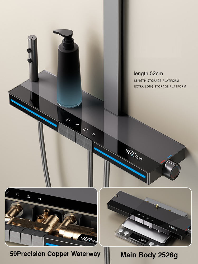 52 厘米钢化玻璃储物平台专为存放您所有的淋浴必需品而设计。其耐用的结构确保它可以容纳多个瓶子和配件,让您轻松取用所有物品。